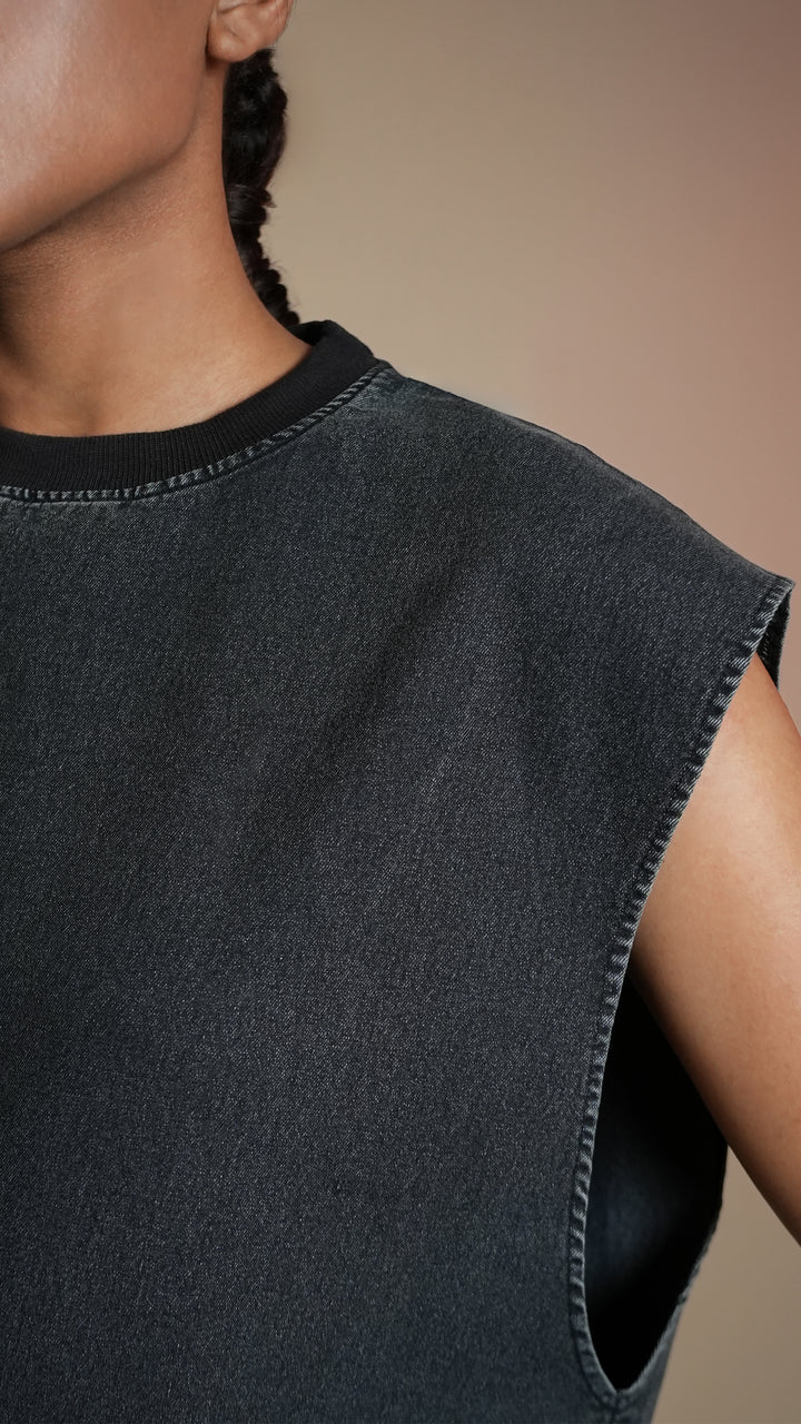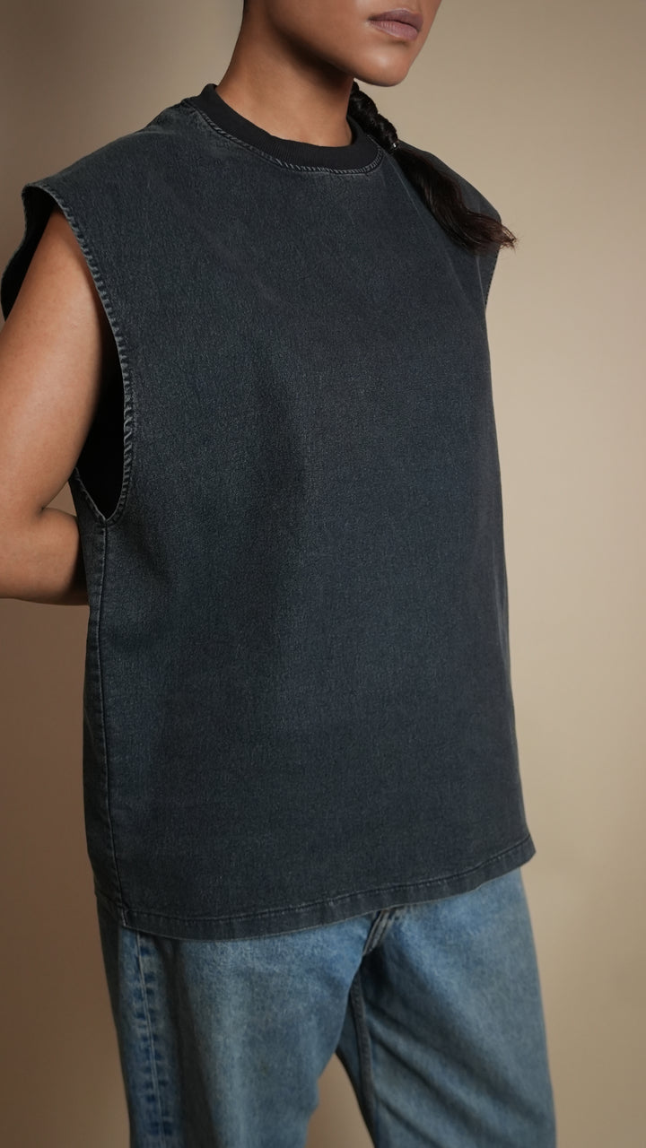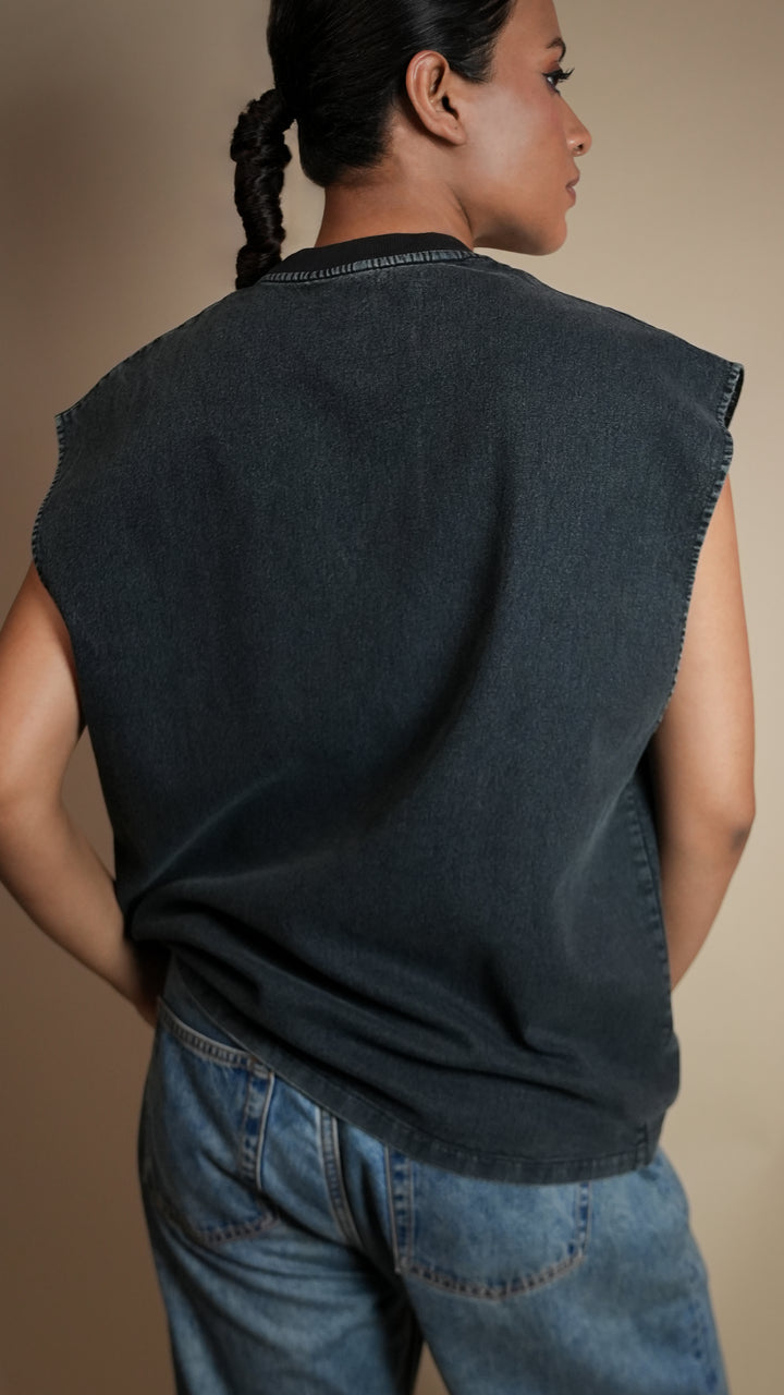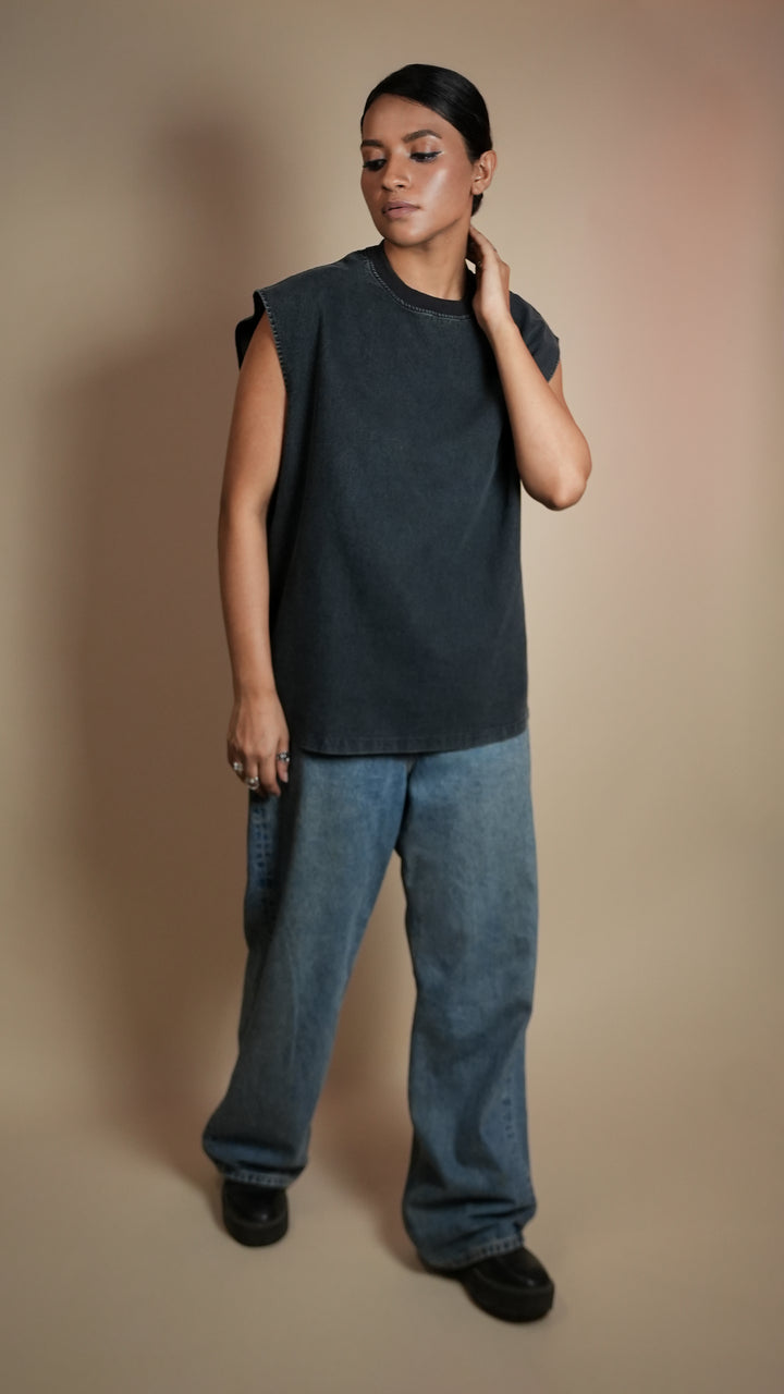 Made from lightweight 7 oz polyester-cotton blended denim, this breathable tank delivers comfort with an edge. Designed with deep-cut sleeves, sulphur-dyed and acid-washed for a raw vibe, and finished with antique accessories. Each piece is hand-cut and handcrafted for a one-of-a-kind finish.
