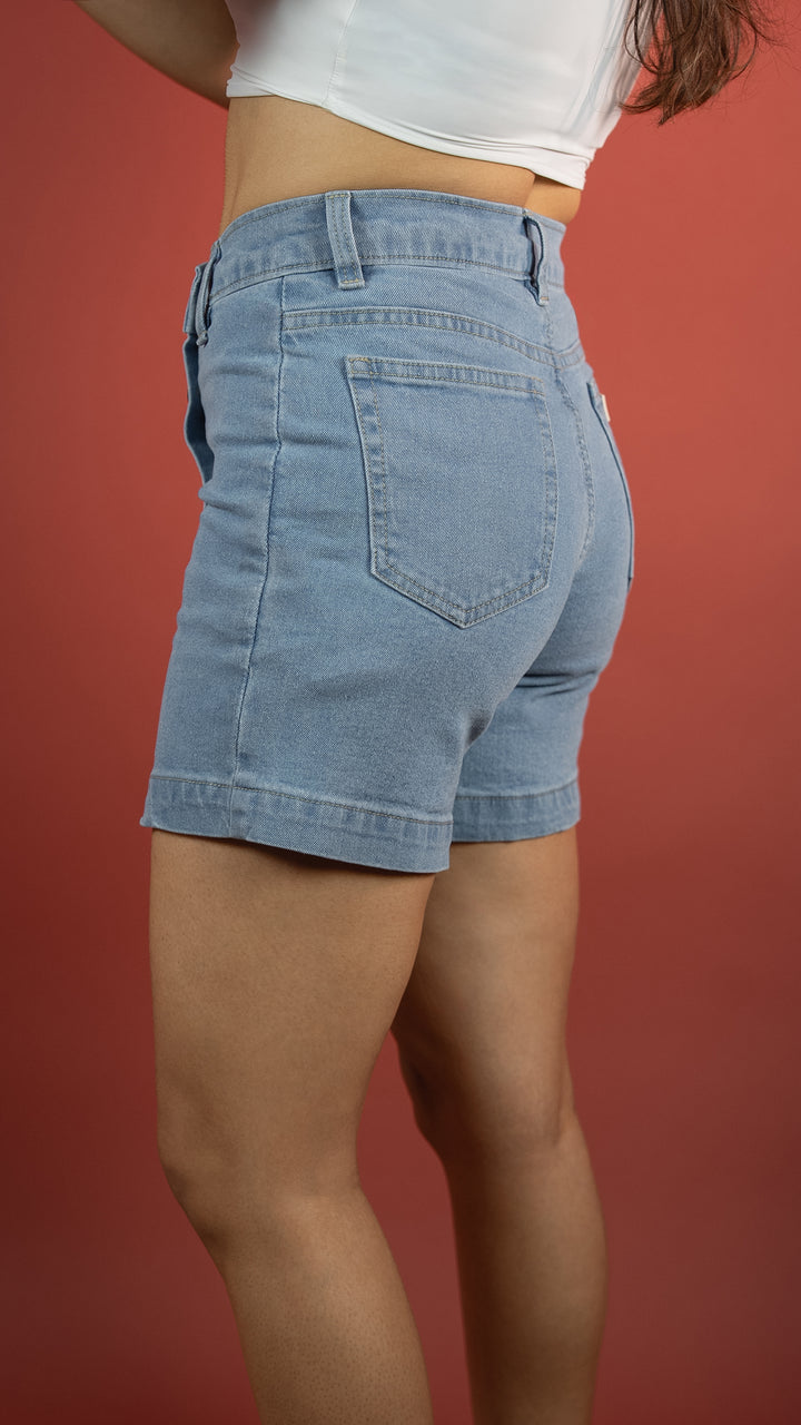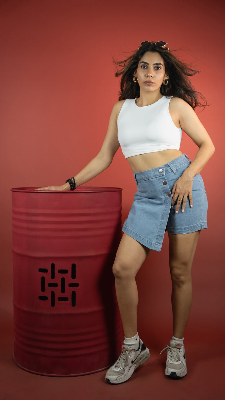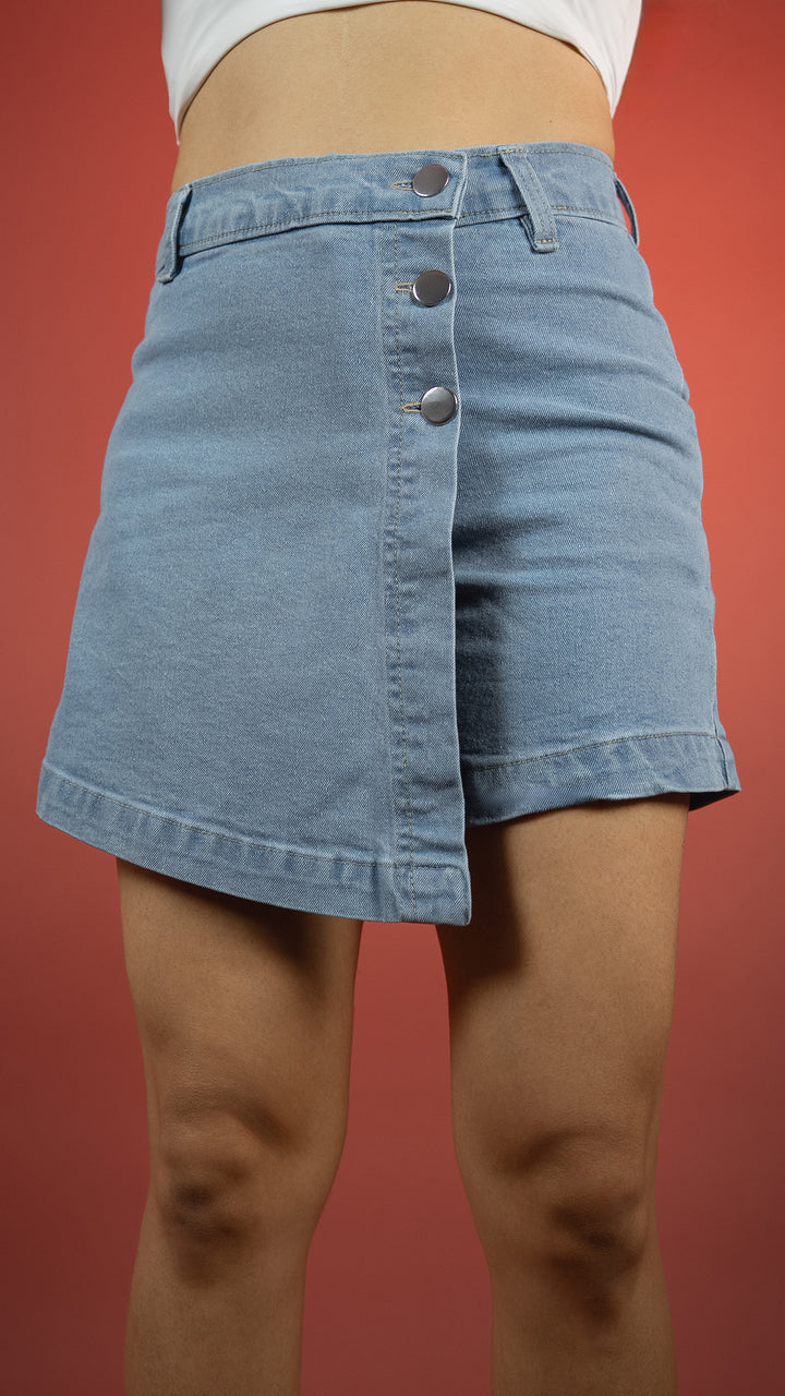 Ice Blue, Stretch Denim, Skirt-Short Hybrid