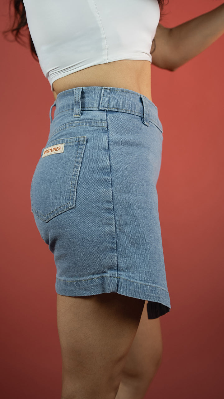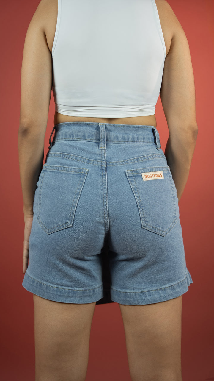 A skirt? A short? Why not both? Made from soft and stretchy 9.5 oz cotton denim, this skort gives you ice-blue freshness with the comfort of built-in shorts. Stone-washed for that vintage vibe, and finished with subtle silver details, it’s flirty, fun, and fuss-free.